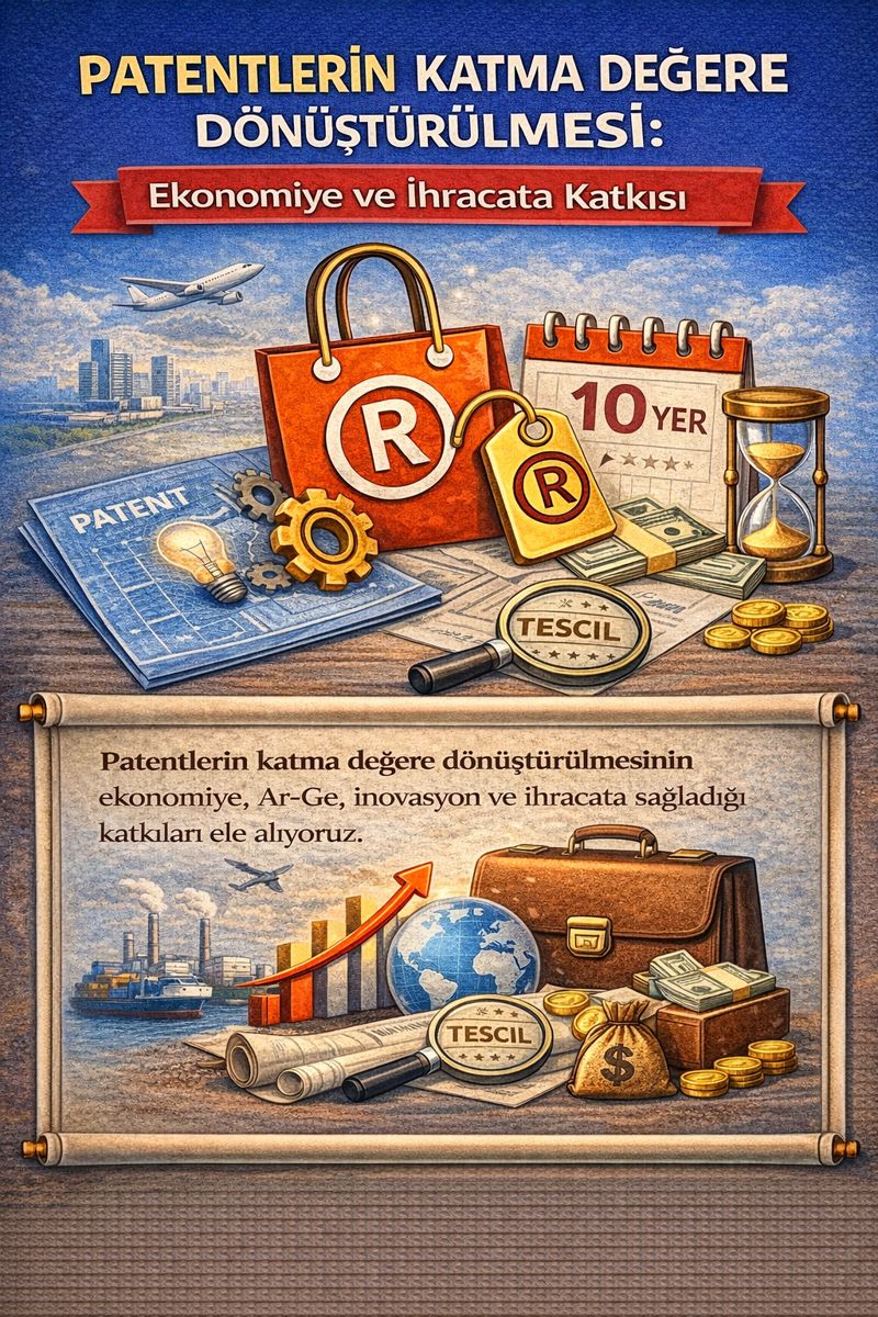 Günümüz rekabetçi ekonomilerinde patentler yalnızca hukuki koruma araçları değil; doğru stratejiyle yönetildiğinde yüksek katma değer, ihracat artışı ve sürdürülebilir büyüme sağlayan kritik ekonomik enstrümanlardır. Bu makale, patentlerin ticarileştirilme süreçlerini, ekonomik etkilerini ve özellikle ihracat odaklı büyümedeki rollerini ele almakta; Türkiye ve sanayi şehirleri açısından uygulanabilir bir yol haritası sunmaktadır.